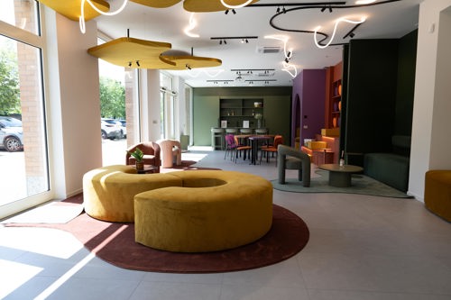 Il modello scelto da Banca di Cherasco si distingue per un’impostazione innovativa e accogliente: chi entra viene accolto in un ambiente aperto, luminoso e colorato, dove è possibile fermarsi per un caffè oppure confrontarsi con altri Soci e clienti, nello spirito del Credito Cooperativo; gli spazi di consulenza garantiscono comfort e riservatezza, mentre l’area comunitaria rappresenta il cuore pulsante della filiale, uno spazio dinamico che ospiterà eventi culturali, esposizioni d’arte e momenti di incontro e confronto aperti alla cittadinanza, configurandosi come un vero e proprio hub creativo al servizio dei Soci e della comunità.